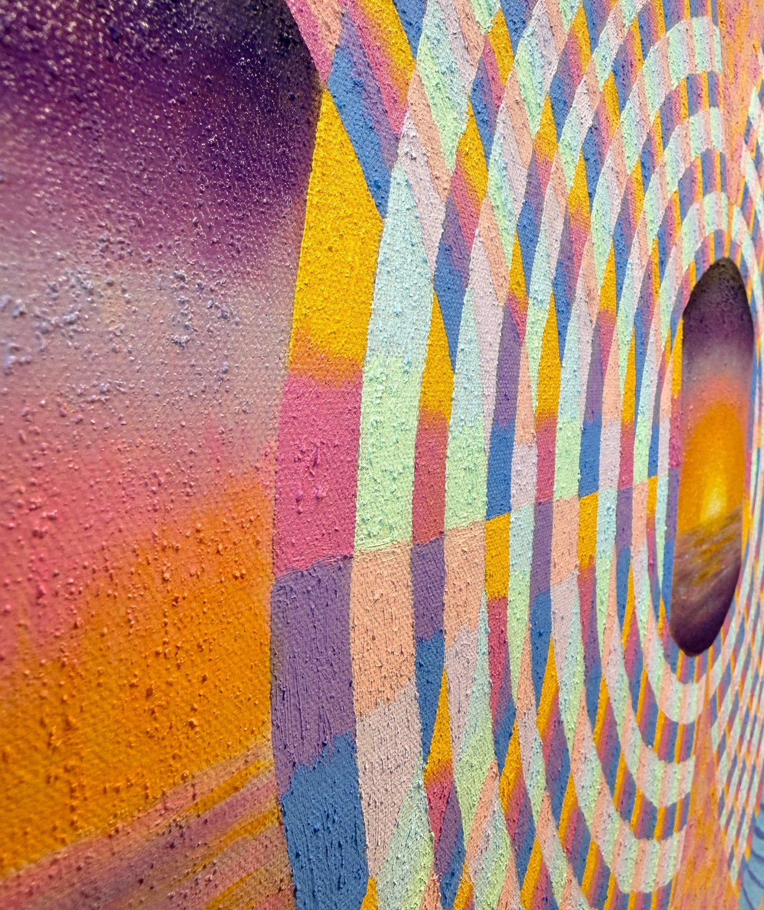 Oil Paint, Wax Medium, Crushed Gemstones (Rose Quartz, Lapis Lazuli, Emerald, Garnet, and Turquoise) on Canvas