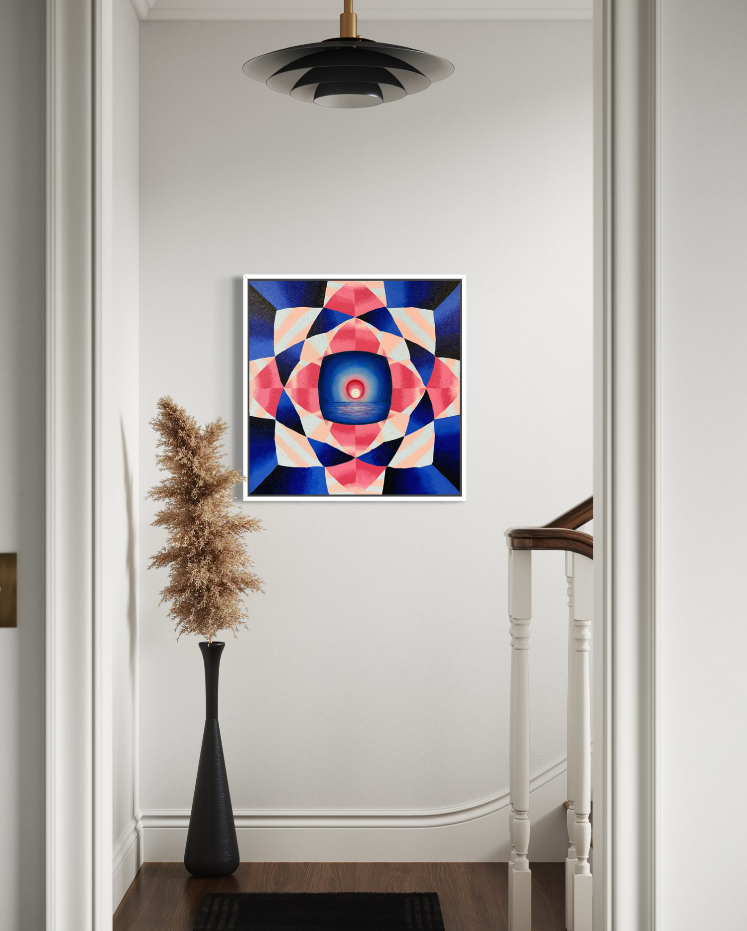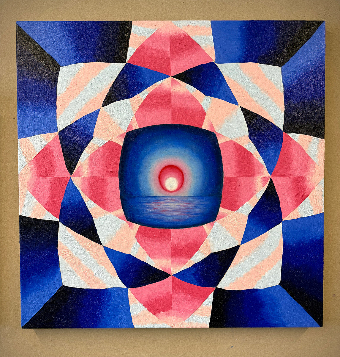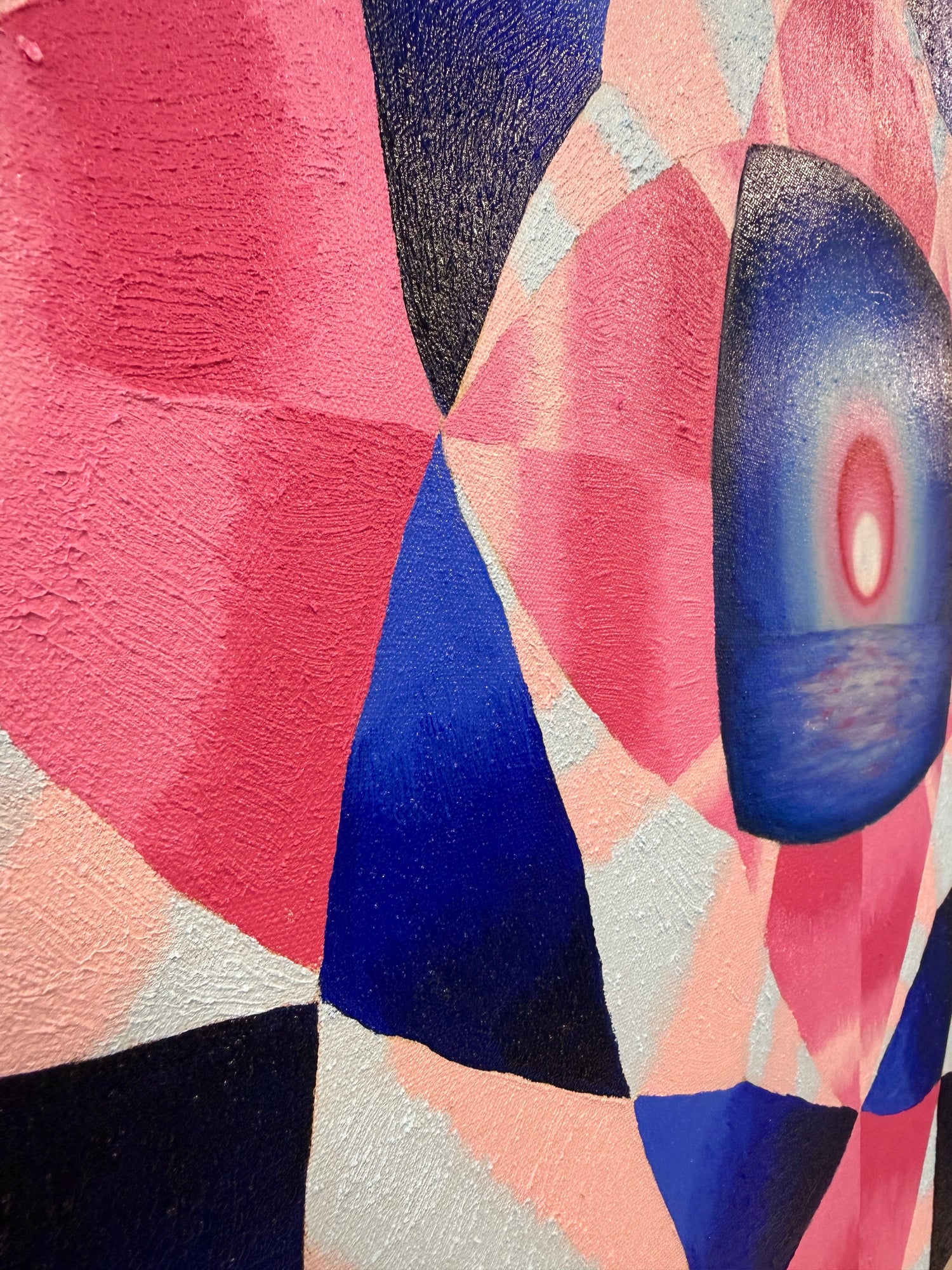 Oil paint, wax medium, crushed gemstones (Quartz Crystal, Turquoise, Red Coral, and Lapis Lazuli) on canvas