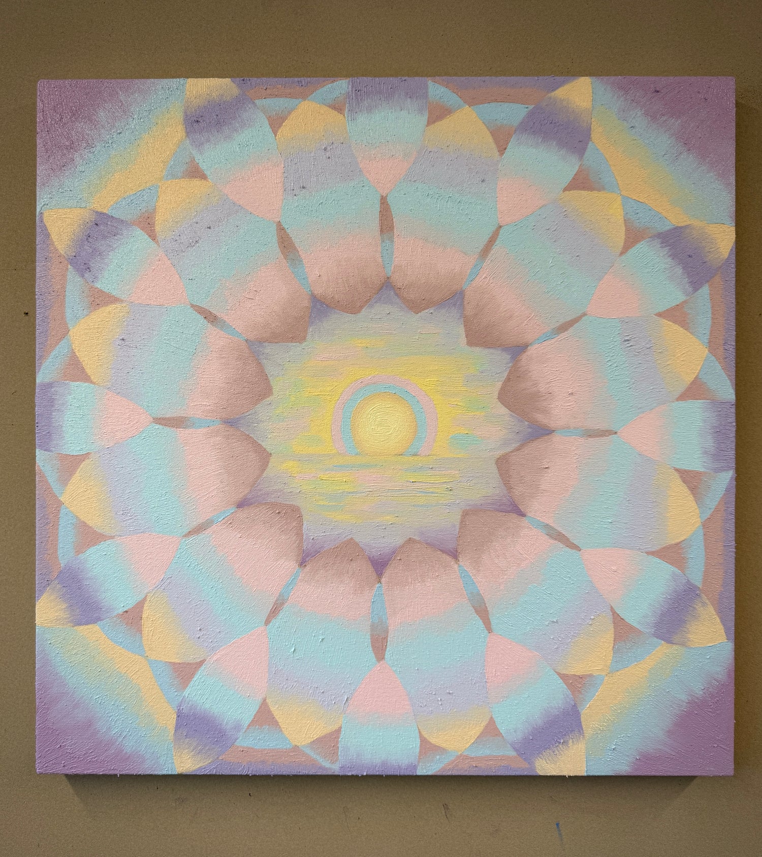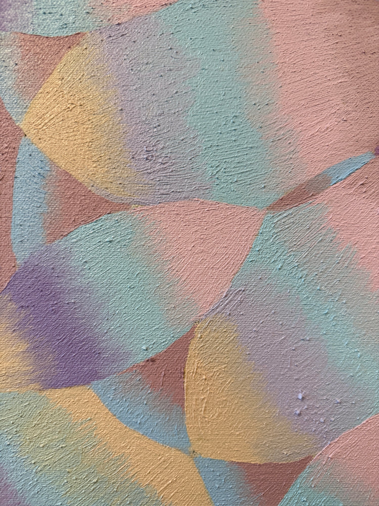 Oil Paint, Wax Medium, Crushed Gemstones (Turquoise, Amethyst, and Red Coral) on Canvas