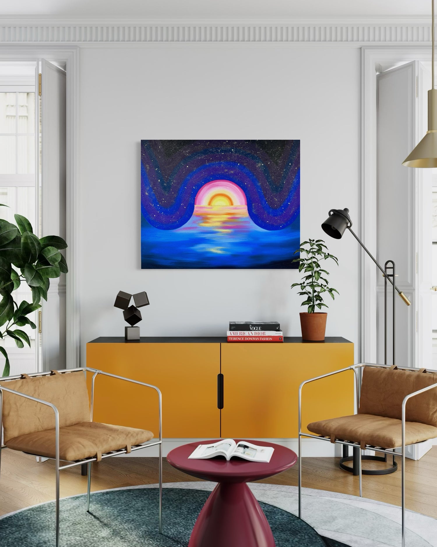 Oil Paint, Wax Medium, Crushed Gemstones (Amethyst, Lapis Lazuli, Moonstone, Rose Quartz, and Turquoise) On Canvas